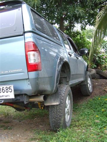 1. ด้านหน้าถ้าใช้โช๊คเดิม ก็ให้หนุนหัวโช๊คสัก 1-2 นิ้ว ส่วนด้านหลังจะเลือกใช้โตงเตงยาวหรือเสริมแหนบยก ก็ตามอรรถภาพและปัจจัย