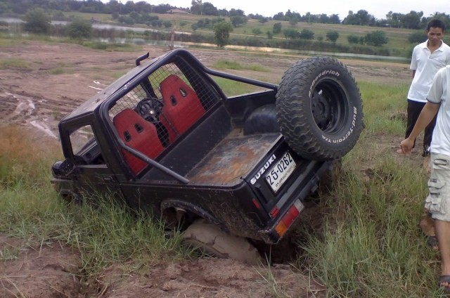 update เร็วจริงนะน้าเนม แอบเห็นตัวผมครึ่งตัวด้วย อะๆๆ หลังจากเมื่อวาน ผลของการบ้าละห่ำของผมเอายาง H/T ไปปั่นจนพี่ LAN CRUISER ต้องมาลากครับก่อนหน้าที่น้าจะมาถึงครับ ได้อาการตามมาเลยครับคือบันได้ข้าง งอ ฮะน้าตอนนี้ผมดัดคืนแล้วยังมีรอยบุบอยู่ พวงมาลัยสั่น อาการนี้นึกว่าจะเสียตังค์ฮะน้าที่ไหนได้เจ้าโคลนไปเกาะที่แม็กด้สนในก้อนเบอเล่อเลยฮะ เล่นเอาตกอกตกใจเลยพอไปอัดฉีดอาการสั่นก็หายไปฮะน้า สงสัยรถผมจะต่ำไปจริงๆ ตอนนี้เลยเปลี่ยนโตงเตงเอา 6 นิ้วมาใส่แทน 4 นิ้วครับอาการที่ได้มาคือแข็งขึ้นนิดหน่อย สูงขึ้นมานิดนึงเดี๋ยวว่างๆ จะกลับลูกหมากลงล่างอีกฮะและก็กำลังมองหาโช๊คที่หนึบกว่าเดิมด้วยฮะ แต่ตอนนี้ยังไม่มีตังค์ แงๆๆๆ