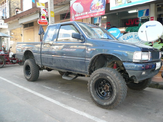 เริ่มจากเปลี่ยนเครื่อง เป็น 1JZ-GE 2500cc AUTO เปลี่ยนเฟืองท้ายใหม่เป็น 8:41 ใส่ยาง 31" ยกบอร์ดี้ 2 นิ้ว ตามด้วยใส่ชุดยกของคนป่า 4 นิ้ว ด้านหน้ายกคอม้า 4 นิ้ว ด้านหลังแหนบเทรินเพลา เปลี่ยนแหนบใหม่เป็นแหนบกระทิง (ผมมีแหนบ MU อยู่อีกชุดครับ ยก2 นิ้ว) ยังไม่ได้ใส่กันสะบัดเลย มองหาอยูเหมือนกันครับ