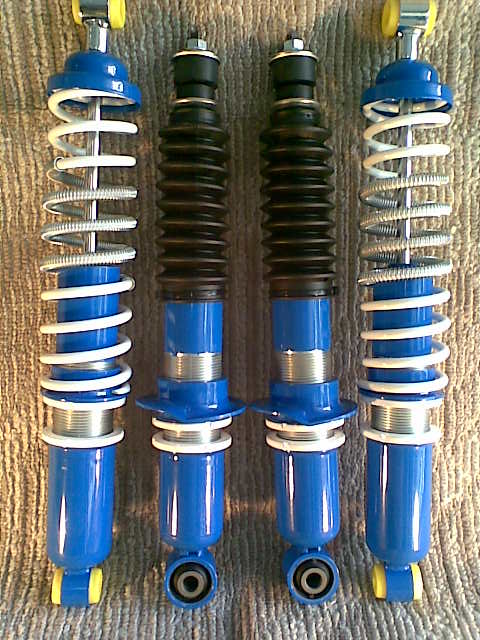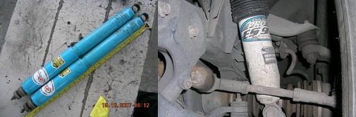 ส่วนโช้ค ยังไม่ได้เปลี่ยนครับใช้ของเดิมตอนที่โหลดอยู่ เป็นโช้คของ KAYABA กระบอกเงิน ลองวัดโช้คขณะจอดปกติ ด้านหน้า 12.5 นิ้ว (วัดจากเกลางจุดยึดทั้งบนและล่าง) ด้านหลัง ขวาฝั่งคนขับ 16.5 นิ้ว ซ้าน 18.5 นิ้ว (วัดจากกลางหูบน-หูล่าง) ลืมบอกไปว่า ผมมีโช้ค MONROE GAS MAGNUM อยู่อีก 1 ชุดคู่หน้า ยืดยุบ 15"-10.5" คู่หลัง 22"-13" กระบอกสีออกเหลืองเข้มๆ made in U.S.A. ไม่รู้ว่าจะใส่ได้หรือเปล่า
