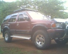 ผมได้ ISUZU CAMEO มาใช้ตั้งแต่เดือนกุมภาพันธ์ที่ผ่านมา คันที่ได้มานี่ เจ้าของเก่าเขาเปลี่ยนโช้คหน้าเป็น Kayaba แก๊สกระบอกเงิน (ไม่แน่ใจว่าเป็นรุ่น Super หรือเปล่า) หลังเป็น RANCHO 5000 ใช้มาได้สักพักหนึ่งก็เปลี่ยนแหนบเพราะว่ามันล้าเป็นเส้นตรงแล้ว ก็ไปหาแหนบ ISUZU MU มาเปลี่ยน ท้ายสูงขึ้นมาหน่อย ประมาณ 1.5"-2" ก็ปรับทอร์ชั่นบาร์ขึ้นไปหน่อย ตอนนี้ด้านหน้าจะต่ำกว่าด้านหลังประมาณ 2" หน้าร่อนบ้างเวลาเจอถนนเป็นลูกคลื่น แต่ไม่มากนัก ต่อมาผมก็หาเรื่องไปเปลี่ยนทอร์ชั่นบาร์ PowerBarz by Sway-A-Way มาหนึบขึ้นเยอะ เข้าโค้งด้านหน้าหนึบดีขึ้น