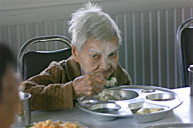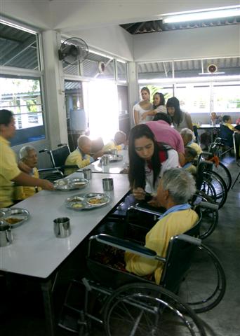 เวลาประมาณ 10:20น. เริ่มเตรียมอาหารให้คุณยายที่ช่วยเหลือตนเองไม่ค่อยได้ (คือคุณยายที่มีอายุเกิน 90 ปี) ซึ่งตามปรกติ คุณยายที่ช่วยเหลือตนเองได้ก็จะเป็นผู้ช่วยดูแล ช่วยป้อนอาหารให้ ซึ่งอาหารวันนั้นคณะของเราก็ช่วยกันทำหน้าที่ป้อนอาหารให้ด้วย