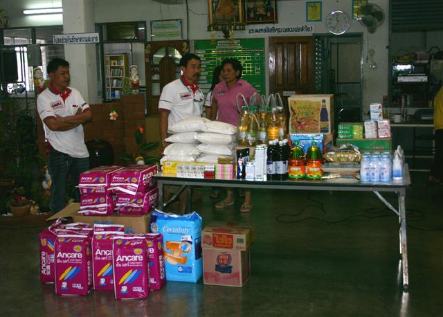 ก่อนกลับ เจ๊พรจันทร IZU629 ที่รับหน้าที่จัดซื้อของบริจาคได้นำของที่จัดเตรียมไว้มาถึงพอดีจึงได้ทำการมอบให้แก่คุณยายและทางสถานสงเคราะห์ไว้เนื่องจากเป็นของใช้สำหรับส่วนรวมอันได้แก่ ผ้าอ้อมผู้ใหญ่ขนาด M และ L ข้าวสารหอมมะลิ สบู่ ยาสระผม ผงซักฟอก น้ำยาล้างจาน แป้งผัดหน้า และอื่นๆ อีก
