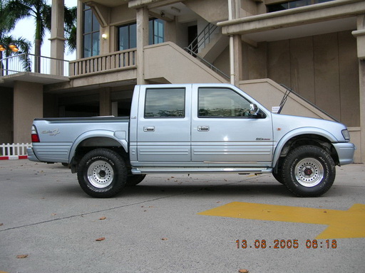 โรดิโอคันเก่าของผม ยก 2 นิ้วโดยการ ขันทอร์ชั่นบาร์ขึ้น 1.5 นิ้ว รองก้อนเหล็กอีก 0.5 นิ้ว กลับลูกหมาก ด้านหลังเปลี่ยนหูแหนบยาวขึ้น 2 นิ้ว ใช้งบไม่น่าเกิน 1500 ใส่ยาง 31 ของดันลอป AT2