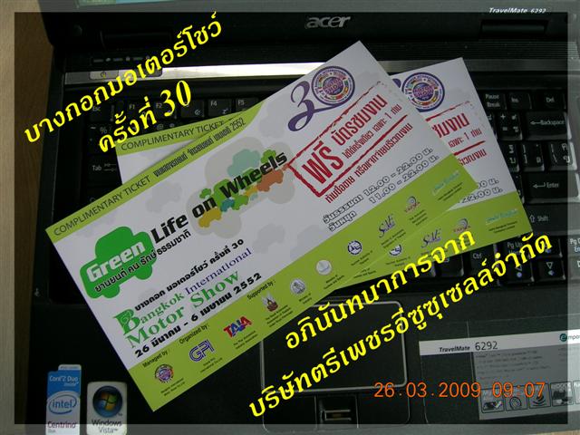 ด้วยความอนุเคราะห์จาก บริษัท ตรีเพชรอีซูซุเซลล์ จำกัด ที่ได้ให้บัตรชมงาน บางกอก มอเตอร์โชว์ ครั้งที่ 30 ซึ่งจัดระหว่างวันที่ 26 มีนาคม - 6 เมษายน 2552 แก่สมาชิก Isuzu Offroad Unity (IZU)