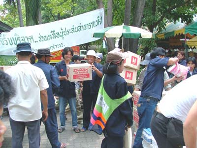 ที่ร่วมบริจาค สิ่งของเครื่องอุปโภค-บริโภคมากมาย และขอให้ทุกท่านประสบแด่ความสุขความเจริญยิ่งๆขึ้นไปค่ะ งานนี้เราได้สิ่งของบริจาคมากมายจนไม่สามารถขนมาร่วมถ่ายรูปได้หมดเพราะมันหนักค่ะ เลยนำมาถ่ายรูปได้เพียงบางส่วน ที่เหลือก็มอบให้ทางเจ้าหน้าที่ศูนย์บรรเทาทุกข์เขตสาทรได้ดูแลแจกจ่ายให้แก่ผู้ประสบภัยที่มารอเข้าคิวรับความช่วยเหลืออย่างแน่นขนัดค่ะ ไปดูภาพกิจกรรมการกุศลครั้งนี้กันค่ะ