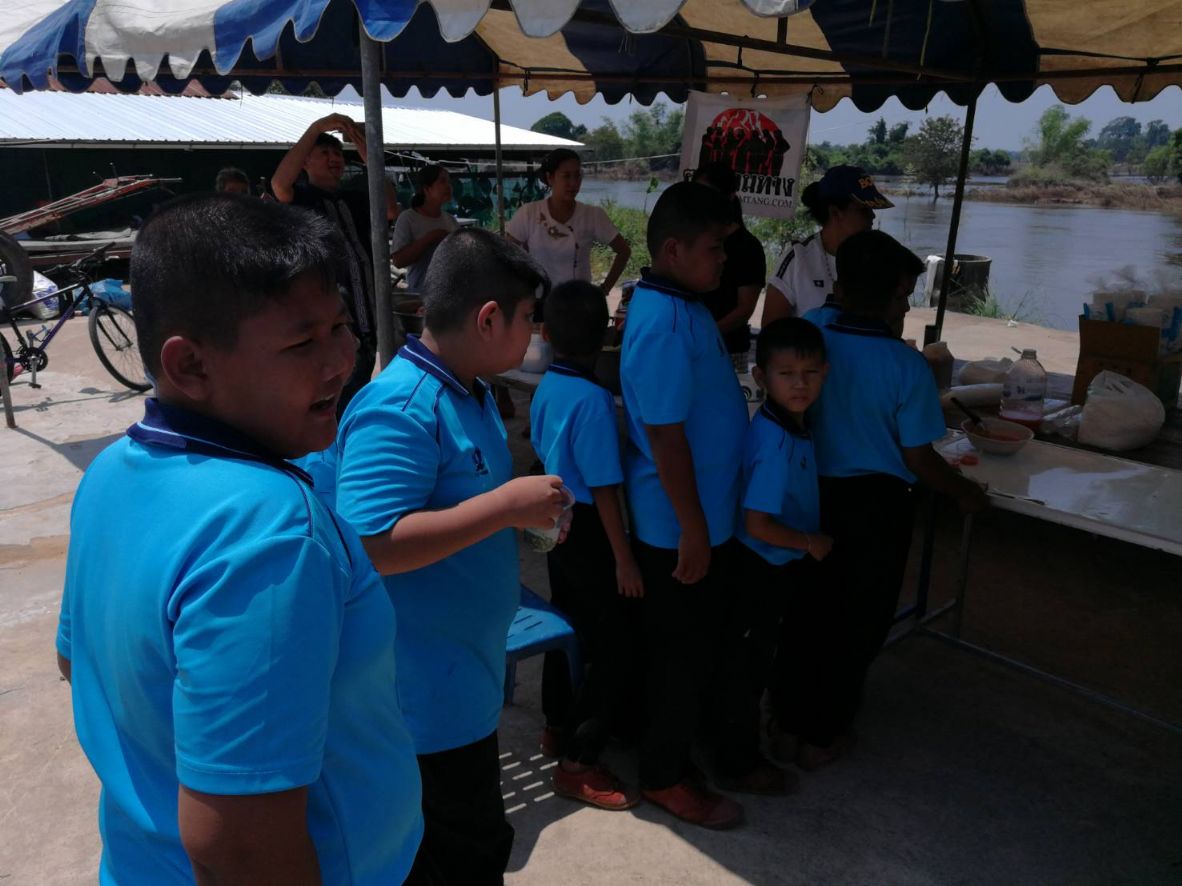 ดุ่ยแม๊กนั่ม (ฅนถามทาง 042) ตัวแทนกลุ่ม ฅนถามทาง , ครอบครัว และญาติพี่น้อง ร่วมซับน้ำตา ผู้ประสบอุทกภัย จ.ร้อยเอ็ด