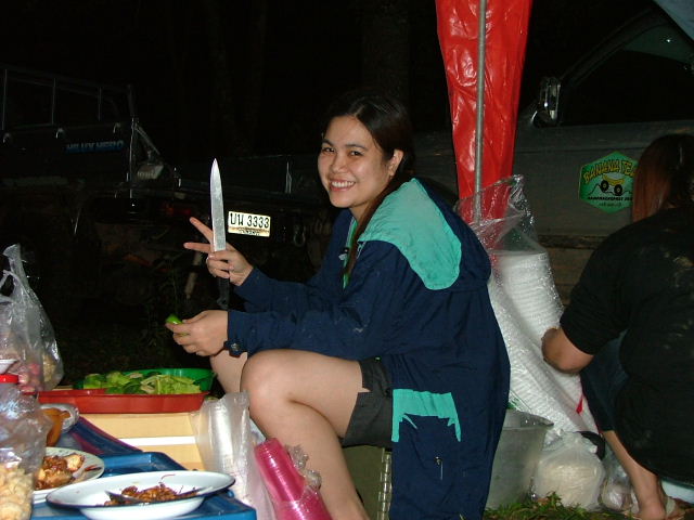 รูปนี้แปลกๆนะว่ามั้ย ชู2นิ้วยิ้มหวานๆแต่ถือมีดในมือนี่มันยังไงกัน ตั้งชื่อ ยิ้มเฉือนใจเนอะ