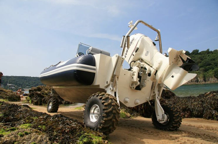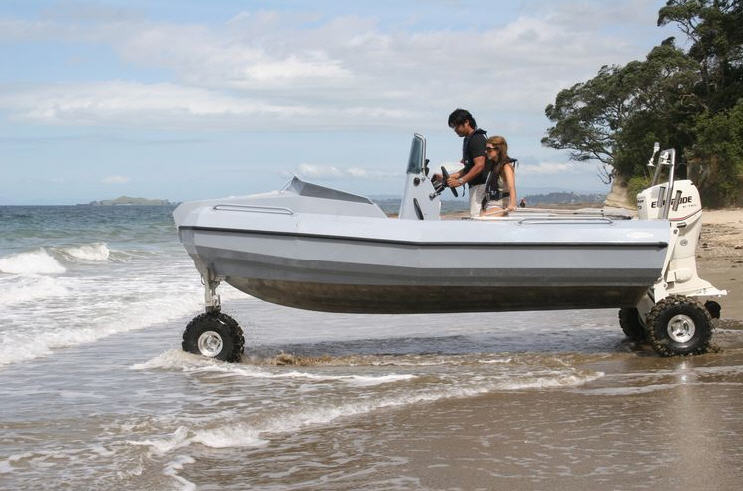 เรือตกปลา แบบมีล้อ แล่นได้ทั้งบนบกและในน้ำ
