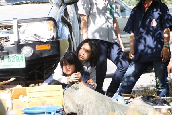 โชคดี...น้อง ๆ ทั้ง 3 คนปลอดภัย บาดเจ็บเขียวช้ำตามร่างกายเล็กน้อย ยกเว้นน้องสุภาพสตรีจาก ร.ร.ชุมชน ฯ คงเสียขวัญมาก