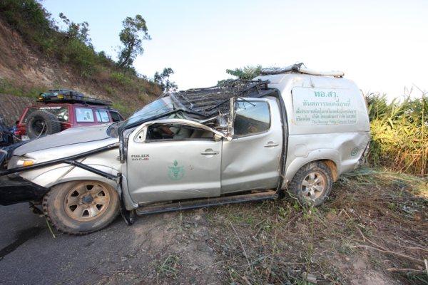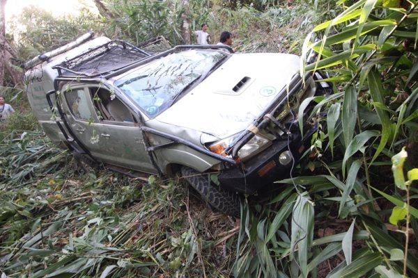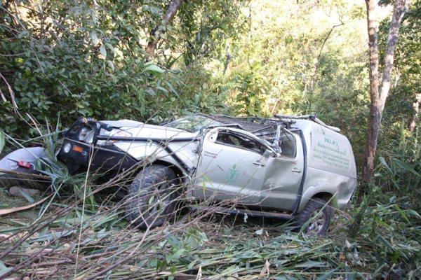 กลิ้ง 3 ตลบ ลึกลงไปประมาณ 50 เมตร สาเหตุใช้ความเร็วมากไปหน่อย เอาไม่อยู่....