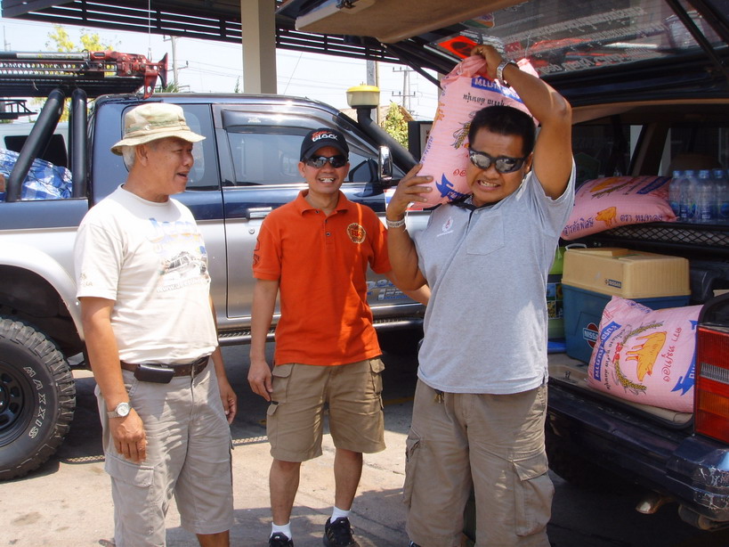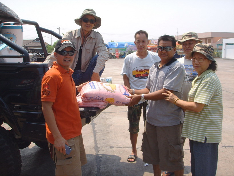บ่ายกว่าๆก็ถึงที่นัดหมาย รับข้าวสารจาก กำแพงเพชรออฟโรด ซึ่งได้รับการประสานงานจาก ครู ยูร โดยให้ คุณ แมนกับ คุณอ๊อด เป็นตัวแทน มามอบให้