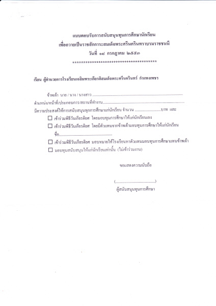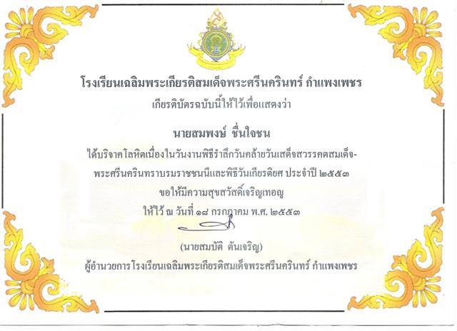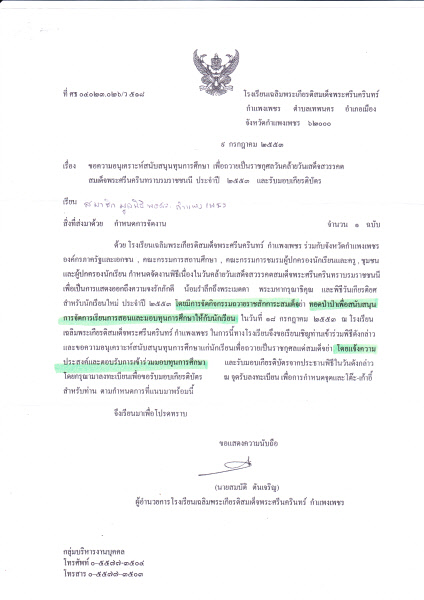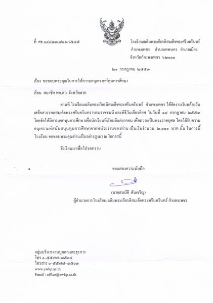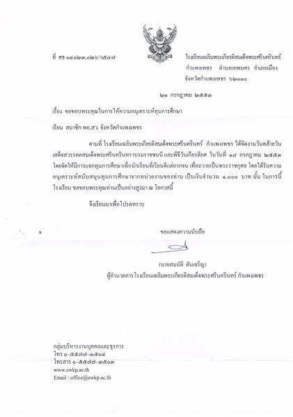 ในนามของคณะครูนักเรียนโรงเรียนเฉลิมพระเกียรติสมเด็จพระศรีนครินทร์ กำแพงเพชร ขอขอบพระคุณพี่ๆทุกท่านที่มาร่วมงานและให้ความอนุเคราะห์ทุนการศึกษาค่ะ ขอบคุณค่ะ