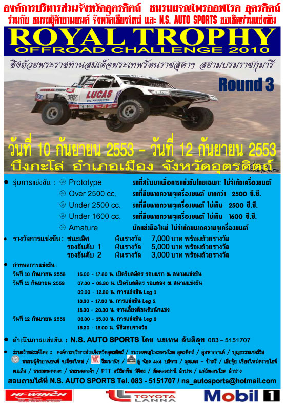 เชิญชมงานแข่งขันRoyal Trophy Offroad Challenge 2010 สนาม 3(จ.อุตรดิตถ์) เก็บคะแนน