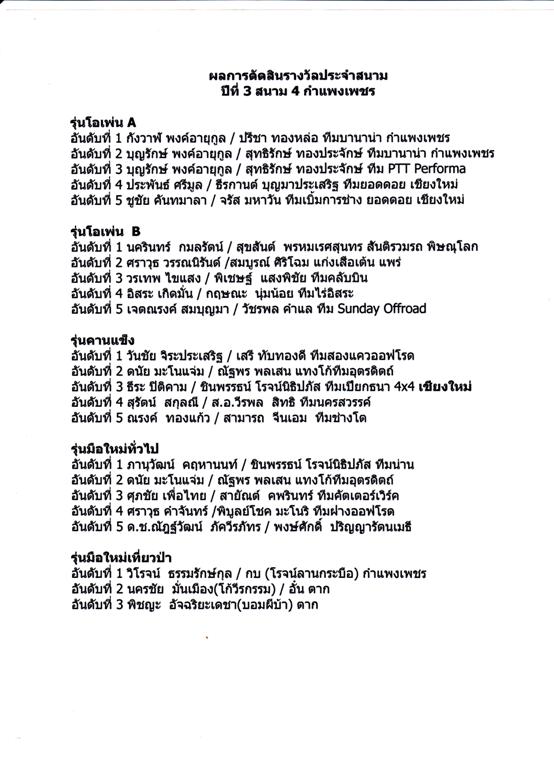 ผลการตัดสินรางวัลประจำสนาม ปีที่ 3 สนาม 4 กำแพงเพชร