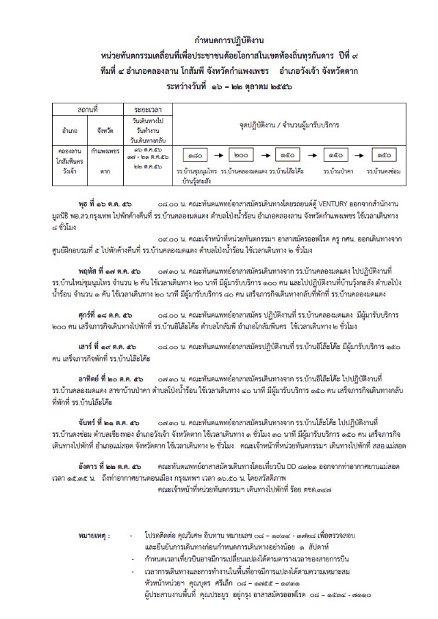 แผนปฏิบัติงานหน่วยทันตกรรมเคลื่อนที่เพื่อประชาชนด้อยโอกาสในเขตท้องถิ่นธุระกันดารมูลนิธิ พอ.สว.ปีที่ ๙