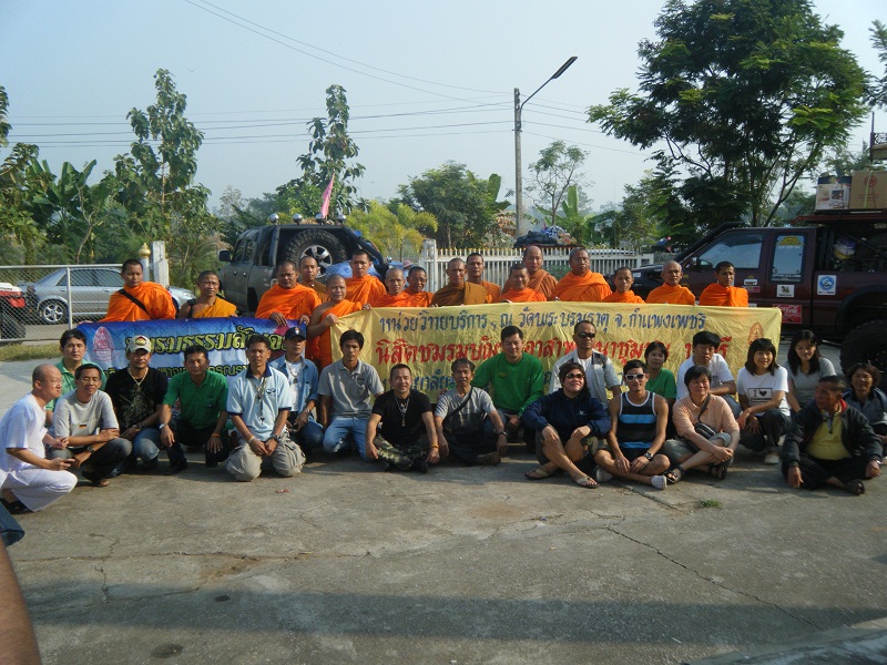 บรรทุกสัมภาระปัจจัยสิ่งของที่นำไปบริจาค (จำนวน ๑๗ คันรถ) ณ หน่วยวิทยบริการฯ วัดพระบรมธาตุ ตำบลนครชุม อำเภอเมืองฯ จังหวัดกำแพงเพชร ออกเดินทางเวลา ๐๙.๐๐ น.