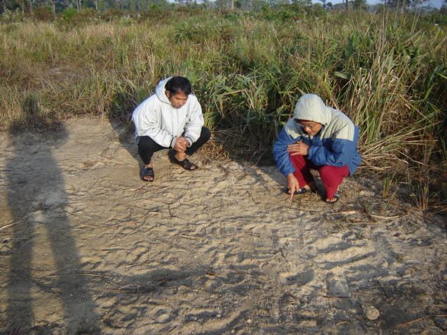 เช้า...เดินศึกษาธรรมชาติ พบรอยเท้าสัตว์มากมาย เช่น ความป่า เก้งกวาง หมูป่า อีเห็น และมูลช้าง ฯลฯ