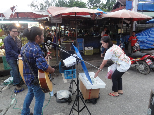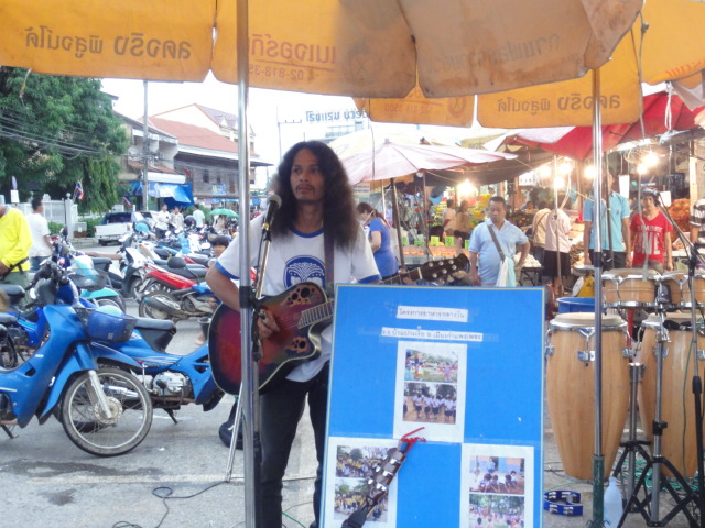 เล่นดนตรีเปิดหมวก ที่ ตลาดไนค์ จ.กำแพงเพชร เพื่อเลี้ยงอาหารกลางวัน โรงเรียนปางเรือ ต.วังทอง อ.เมือง จ.กำแพงเพชร