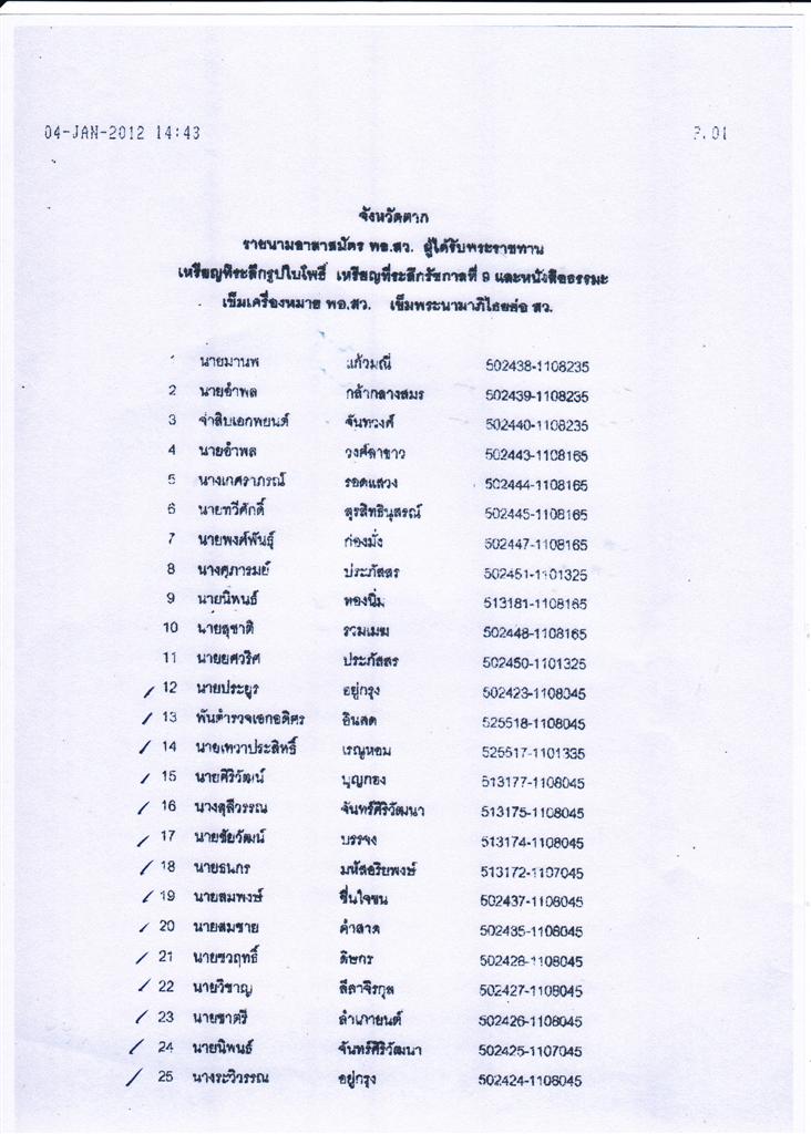 รายนามอาสาสมัคร พอ.สว.ผู้ได้รับพระราชทานของที่ระลึก