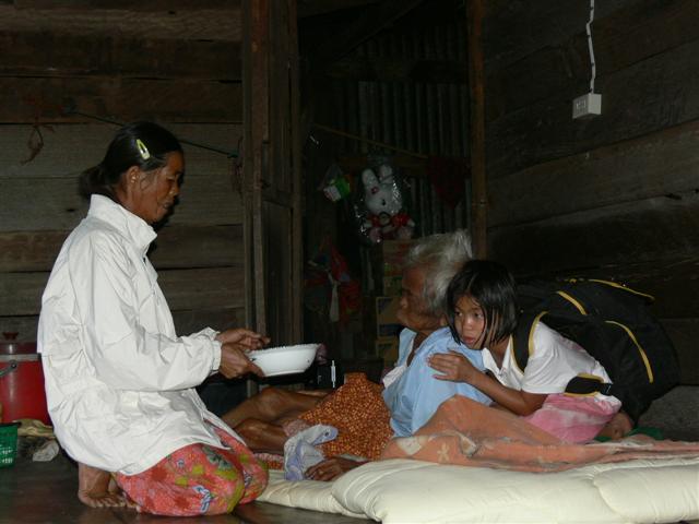 เมื่อก่อนยายเครือ จะออกไปรับจ้างช่วยลูกสาวอีกแรง แต่เมื่อ ต้อหินลุกลามจนดวงตาอับแสง ซ้ำยังหลง ๆ ลืม ๆ หากเผลอ มักหายตัวออกจากบ้านไปเฉย ๆ กลายเป็นภาระให้สมคิดต้องเฝ้าดูแล จนไม่เป็นอันทำกิน หยุดรับจ้างมาหลายเดือนแล้ว ใช้จ่ายผ่านเบี้ยยังชีพของแม่ ก็ไม่พอปลดเปลื้องชีวิตให้พ้นเดือน