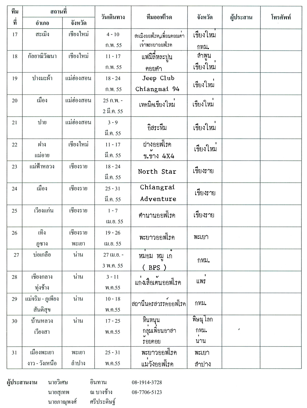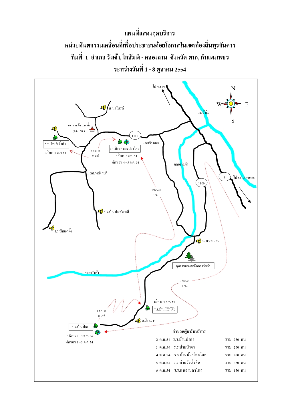 ประสานงานกับคณะแพทย์ที่เดินทางจาก กทม.(รถตู้) และรถเครื่องมือ ฯ ที่ตาก เดินทางมาพบกันที่วังเจ้าเวลาเที่ยง