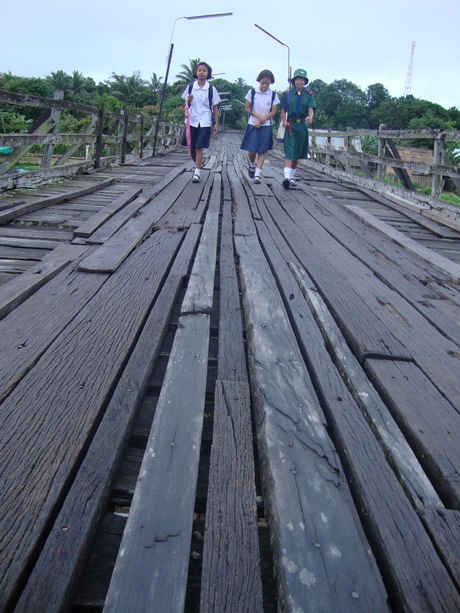 เด็กนักเรียนอนุบาลสังขละบุรี ยังใช้เส้นทางนี้เดินทางไปโรงเรียน ทั้งๆ ที่มีรถรับส่งแล้ว..น่าจะเป็นเด็กหัวอนุรักษ์ หรือ เด็กรักสุขภาพ