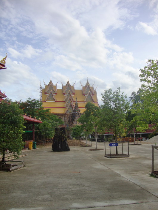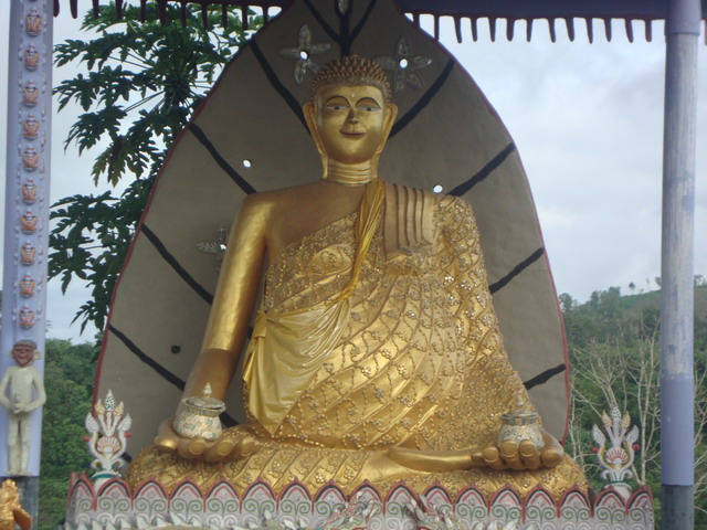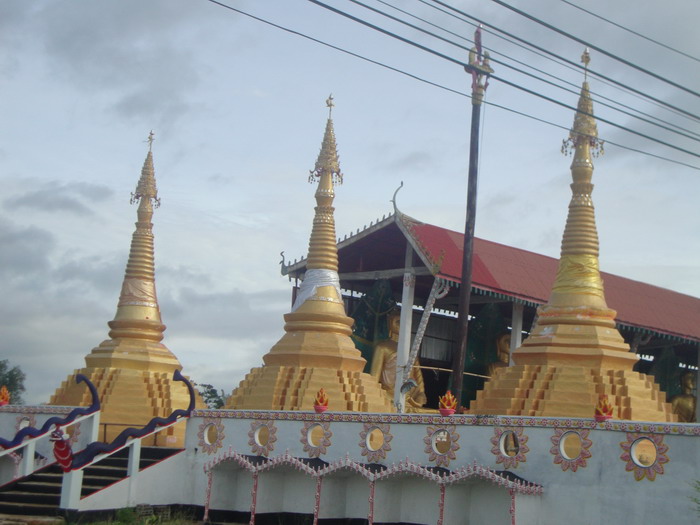 เราก็ออกมาหาอาหารเช้ากินกันที่ปากทางหน้าวัด ร้านกาแฟมีที่พักด้วย มีกาแฟร้อน ,ขนมปัง, ข้าวต้มวิญญาณปลาคัง บริเวณนั้นจะนิยมปลูกยางพารากันมาก แอบไปเห็นมีลูกเนียง ขายข้างทางด้วย