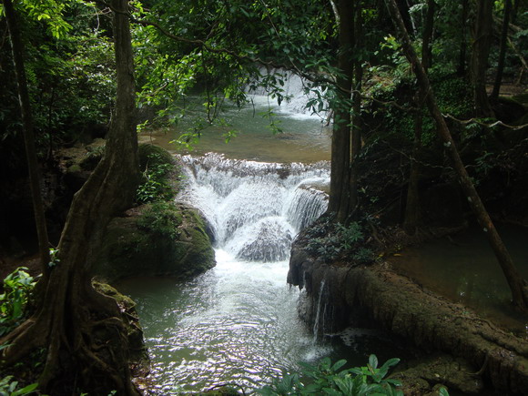 เข้าไปประมาณ 35 กม. แล้วเลี้ยวซ้ายเข้า อช. ทองผาภูมิ ค่อยๆ ไต่ขึ้นไปบนเส้นทางที่คดเคี้ยว แต่ไม่ชันมากนัก เก็บภาพไปเรื่อยๆ เส้นทางที่ผ่าจะมองเห็นอ่างเก็บน้ำในเขื่อนตลอดเส้นทาง