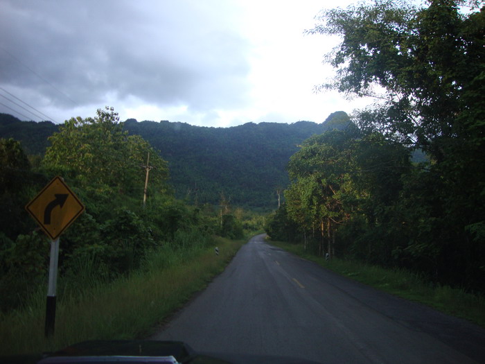 อากาศครึ้มฝนบ้าง สว่างบ้างสลับกันไปเรื่อยๆ สองข้างทางเป็นสวนสัก และ มีสวนยางพารา สวนมาปาล์ม เห็นหนาตามากขึ้นกว่าการไปครั้งก่อนหน้านี้