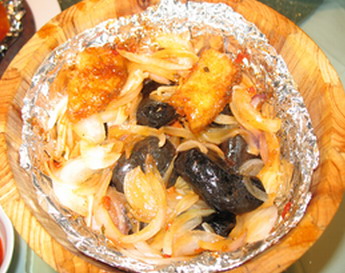 เมนูนี้แปลกดี เนื้อปลาทอดแล้วเอาไปอบกับหินร้อนๆสีดำก้อนเกือบเท่ากำปั้น