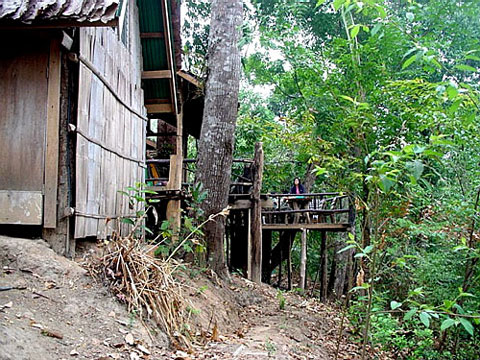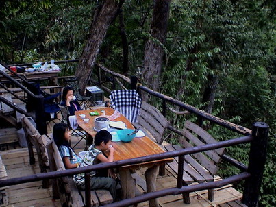 ที่นี่ก็เช่นกัน มีพวกเราอยู่กลุ่มเดียวที่ขึ้นมาที่นี่ ชาวบ้านให้การต้อนรับดีมาก เข้ามารุมล้อม เข้ามาทักทาย สอบถามที่มาที่ไป จนเรากลัวและเกรงใจ ที่เห็นนี่คือระเบียงกระท่อมที่พัก