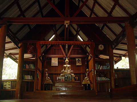 บนยอดดอยเดียวกันมีวัดป่า ชื่อวัดหลวง (ถ้าจำไม่ผิด) เป็นวัดที่เคร่งเรื่องแนวทางปฏิบัติ เงียบสงบ เก่าแก่มีพระจำวัดอยู่ 5 รูป แต่บางช่วงก็ร้างไม่มีพระอยู่เลย เจ๊ใหญ่ของเราบอกว่าเข้าในวัดแล้วสัมผัสได้ถึงความสงบ ความสุข จนขนลุกซู่ (อาจเป็นเพราะไม่ค่อยได้เข้าวัดก็เป็นได้ )