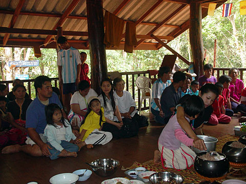 คืนนี้เรานอนค้างกันที่วัด พี่โรสได้นั่งสมาธิบนศาลาปฏิบัติธรรมถึง 2 ชั่วโมง ส่วนผม กับม้ากระโดด แป้งร่ำ นอนกันกลางศาลาในภาพที่9 เที่ยวนี้บูรพาแนวใหม่ ปีใหม่นี้พวกเราคงโชคดี มีสุขกันถ้วนหน้า เช้ามาก็ทำบุญวันสงกรานต์ของหมู่บ้าน มีชาวบ้านมาทำบุญใส่บาตรกัน30-40 คน ส่วนใหญ่จะนำข้าว(ไม่ค่อยมีกับ)มาใส่ตามอัตภาพ พระท่านจะฉันทุกอย่างปนกันอยู่ในบาตร