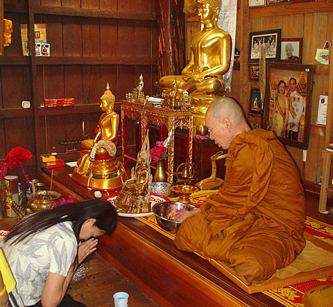 ก่อนกลับ ก็ได้สรงน้ำพระทั้งพระพุทธรูปและพระสงฆ์เพื่อเป็นศิริมงคลในวาระปีใหม่ไทยนี้