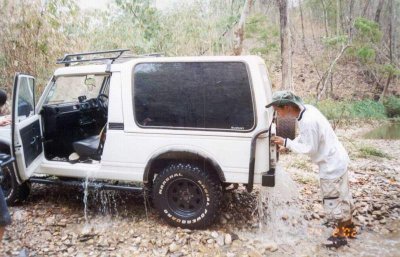นาย เนส ก็เอารถอาบน้ำซะด้วย ดีที่ตะแคงไปแล้วแต่รถตั้งกลับขึ้นมาเองได้...