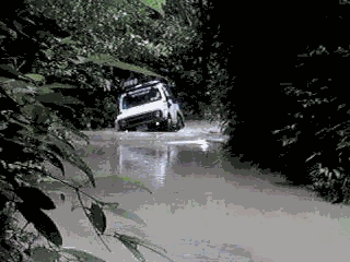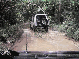 พวกเราแยกซ้ายไปตามป้ายน้ำตกอีเกกก็ได้เรื่องละครับ 1 กิโลเมตรแรกก็เริ่มทักทายพวกเราด้วย ป่าดิบ ชื้นที่ยังมีต้นไม้ใหญ่และเถาวัลย์ขึ้นกันอย่างหนาแน่น ร่องทางรถจะพอดีกับตัวรถพอดี ไม่สามารถออกนอก ร่องทางเดิมได้เพราะจะติดไม้ใหญ่ในทันที ยิ่งเข้ามากิโลที่ 2 , 3 ก็ยิ่งเป็นป่าดิบเข้าไปใหญ่ มาถึงตอนนี้ปรากฏว่า ไพลินและหนูขาววิ่งไปตามทางที่มีแต่น้ำท่วมร่องล้อจนมองไม่เห็นลายน์เดิมเหมือนกับวิ่งไปตามบึง หรือลำคลองยังงัยอย่างนั้น จนมาเริ่มกิโลที่ 3 ก็ต้องลงมาดูลายน์ให้กันบ่อยครั้งยิ่งขึ้น และแล้วไพลินก็ติดจนได้ ด้วยความสูงขนาดยาง 31 และยกอีก 2 นิ้วก็ยังติด โดยแขวนอยู่บนร่อง เรียกได้ว่าออกแรงวินช์กันพักหนึ่งเชียว