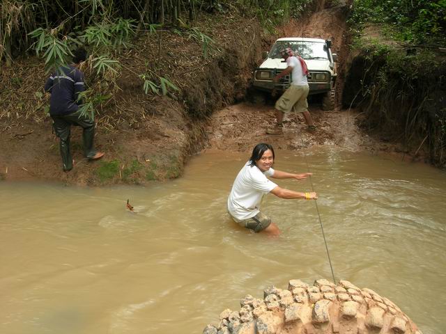รากไม้ ลื่นมากๆเลยครับ ต้องให้เจ้าเสือซ่า ถอยมากระตุก ขึ้นจากบ่อโคลน.................องค์ประทับ รูปต่อไป