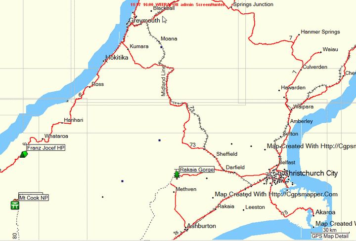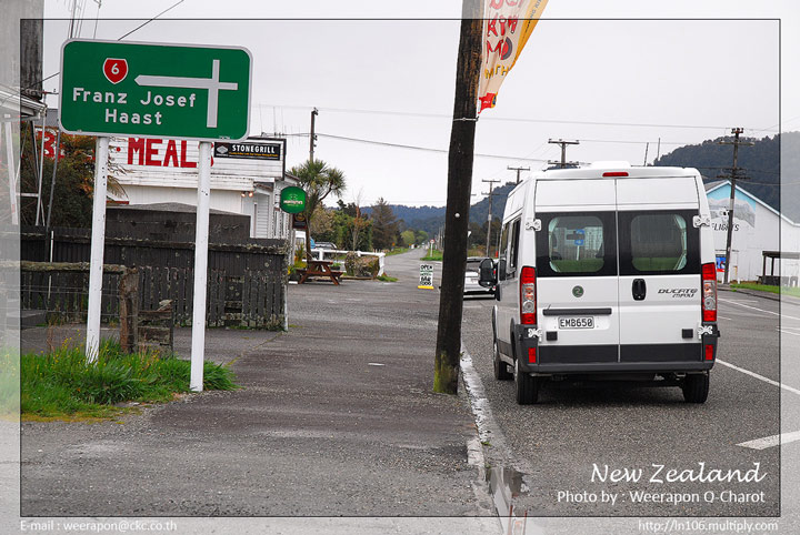 ผมวางแผนเดิมว่าจะขึ้น Greymouth เลยไปดู Punakaiki แต่ดูเวลาแล้วคงไม่พอ ประกอบกับฝนลงหนักจาก Authur’s Pass มาเลยตัดสินใจเลี้ยวซ้ายมุ่งหน้า Hokitika และผ่านเมืองเล็กๆอีกหลายเมืองมุ่งสู่ Franz Josef Glacier