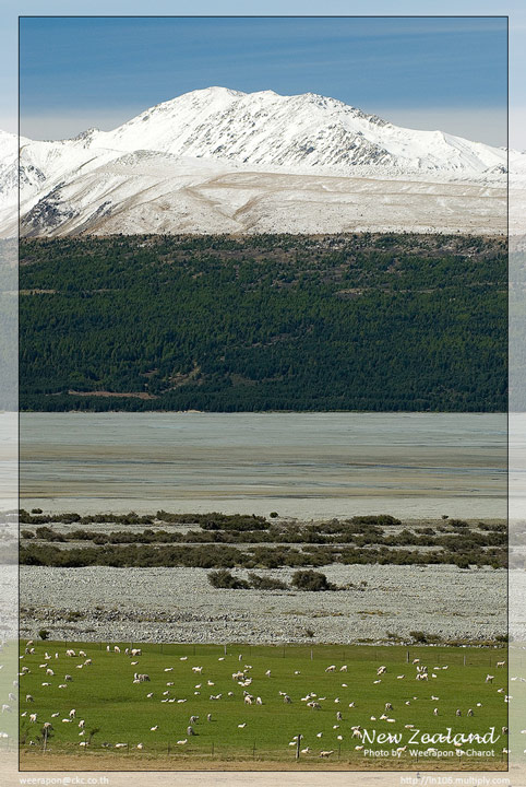 ระหว่างทางก็ผ่านฟาร์มแกะอีกแล้ว วิวดีเหมือนกันครับมียอดเขามารับด้วย