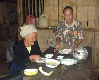 ขากลับ พวกเราได้มอบอาหารและเครื่องปรุงและเงินให้ไว้จำนวนหนึ่งครับ แต่ถ้ามีใครเข้าไป เอาพวกอาหารแห้งไปฝากแกหน่อยก้อดีครับ