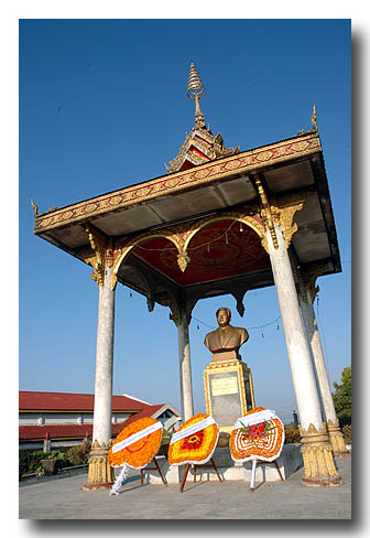 คืนนั้นหลังจากทานข้าวเสร็จ ผมยังไม่ง่วงนอนเลยออกมาเดินเล่นหน้าโรงแรม ฝั่งตรงข้ามจะเป็นที่ตั้งของอนุสาวรีย์ท่านไกรสอน พรหมวิหาร ประธานประเทศ (อนุสาวรีย์นี้จะมี เหมือนๆกันเกือบทุกเมืองที่ไปมาครับ)