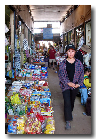 ที่ตลาดนี้นอกจากอาหารการกินแล้ว ก็ยังจะมีสินค้าอุปโภคบริโภคทั่วๆไปขายอยู่เช่นกัน สินค้าส่วนใหญ่จะมาจากจีนแดงแล้วก็ไทยครับ