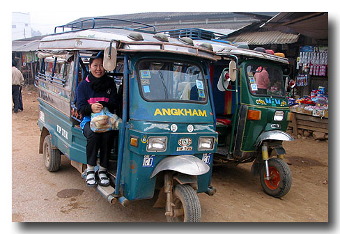 ซื้อของเสร็จแล้วก็นั่งตุ๊กๆกลับบ้านได้...(คิวรถตุ๊กๆข้างตลาดครับ)