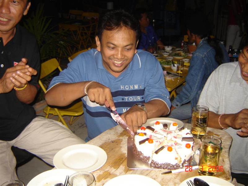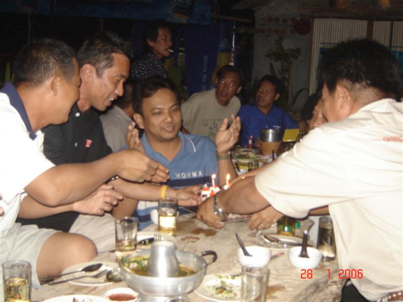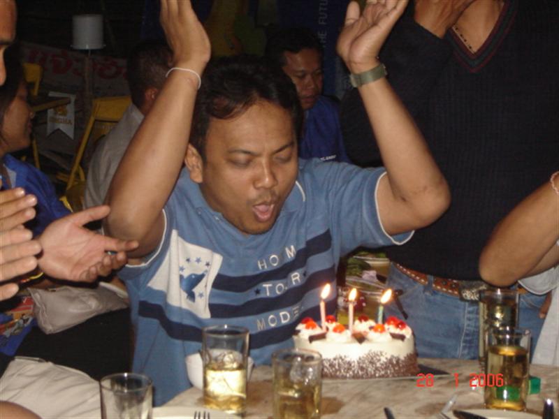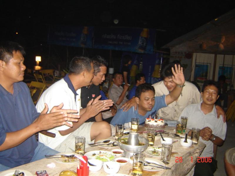 เมื่อเสาร์ที่ 28 ม.ค. 49 ม้ากระโดดมีโอกาสไปปิดทองฝังลูกนิมิตร7-9 วัดในวันเดียว ( เล่นของน่าดู..บุญเพียบ ) ตกตอนเย็นคงเหงามั้งบวกกับน้อยใจในโชคชะตามั้งเลยโทร.หาเพื่อนดื่มเลยโดนเซอร์ไพซ์จากนกเงือกให้พี่แกเป่าเค็กฉลองวันเกิดตังเองซะเลย.....