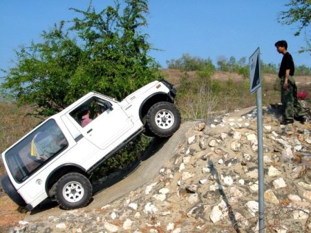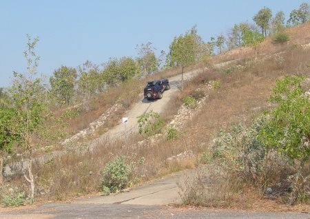 เนินนี้ 35 องศา ถ้าส่งขึ้นน่ะพ้น แต่ให้มันส์ต้องไปคาเนินตรงต้นไม้พอดีน่ะ แล้วทดสอบการปล่อยคลัชดู(หน้ามองฟ้าเลยจะบอกให้ )