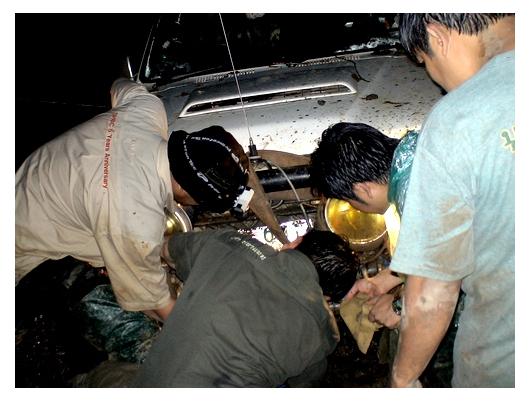 แต่..ไม่ลอง..ไม่รู้..พี่ใหญ่ฟันธง..ขอเข้าทางยาก เพราะทั้งพี่ใหญ่และน้อง ๆ อยากไปสัมผัสเส้นทางที่ร่ำลือกันนักหนาว่ามันโหด! มาก และชาวบ้านบอกว่าฝนทิ้งช่วงมาเป็นอาทิตย์แล้ว ความโหดของเส้นทางคงลดน้อยลงบ้าง ...คิดว่าไม่น่าจะเกินเที่ยงคืนคงถึงน้ำตก...เมื่อไม่สามารถทัดทานพี่ใหญ่ และน้อง ๆ ได้.. ศิษย์พี่จึงขอตัวเข้าอีกทางเพื่อไปทำอาหารรออยู่ที่น้ำตกก่อน...ส่วนพี่ใหญ่พาน้อง ๆ เข้าทางยาก....โดยไม่รู้เลยว่า...เส้นทางหฤโหด!!! กำลังรออยู่ข้างหน้า....