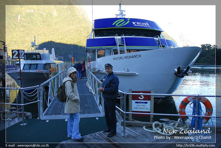 เส้นทาง 120 กม กับเวลา 2 ชั่วโมง ผมก็มาถึงท่าเรือที่ Milford sound ครับ มีเรือให้เลือกอยู่ 4 บริษัท ราคาพอๆกัน ผมเลือกเจ้านี้แหละครับ