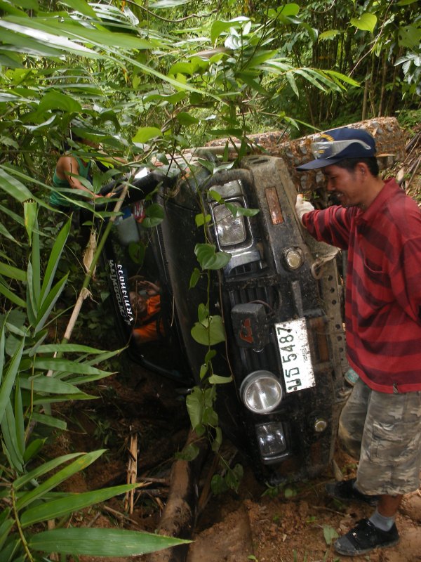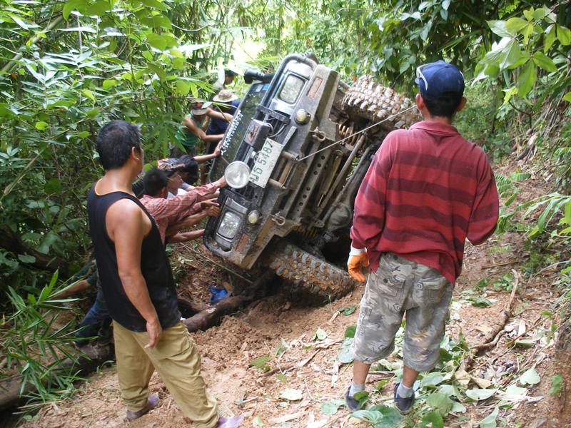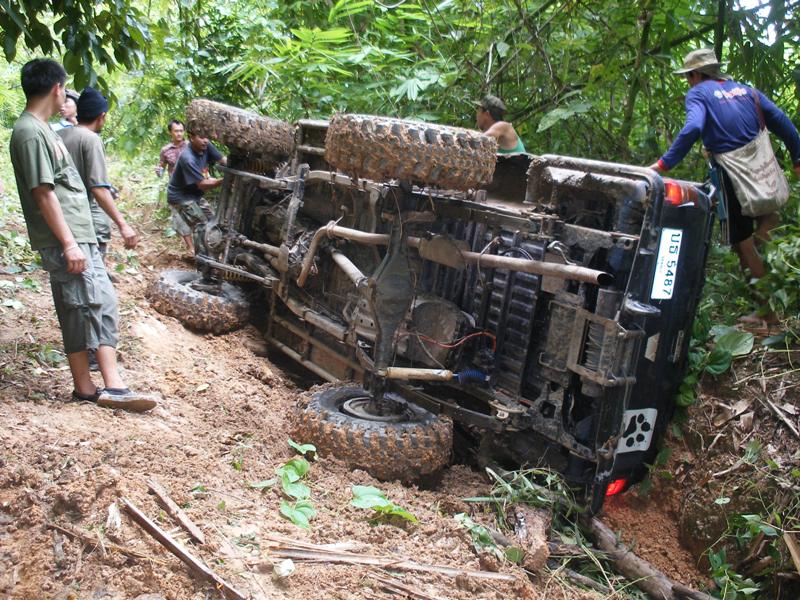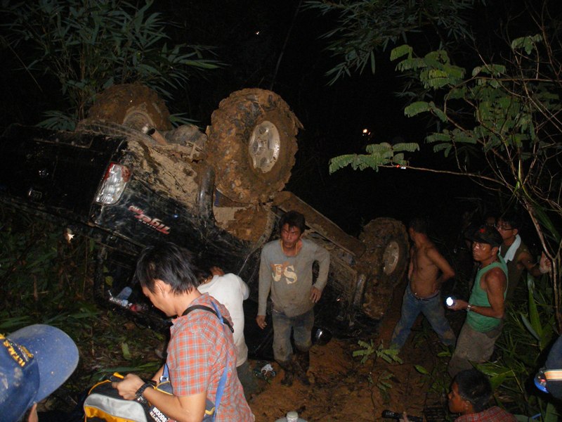 เนื่องจากทางลงเขาข้างหน้าชันมาก โดยที่ วอดำ ของเราได้ถลำตัวลงไปก่อน รถไหลลื่นลงเขาอย่างเร็วมาก โดยที่ผิวดินยังชุ่มช่ำไปด้วยน้ำฝนที่ตกพร่ำๆลงมาเมื่อตอนเย็น