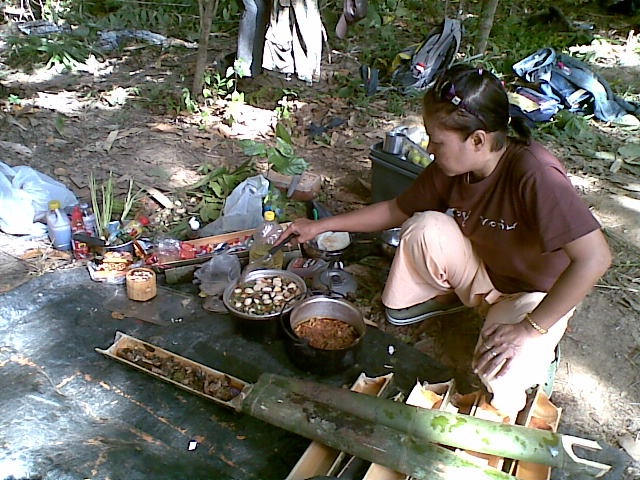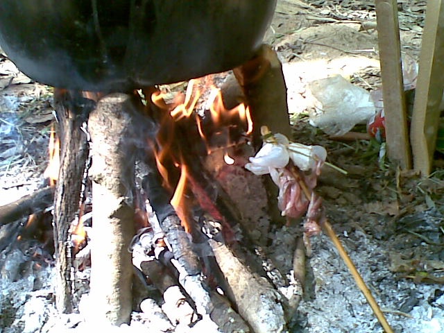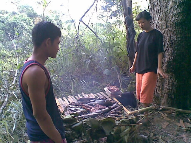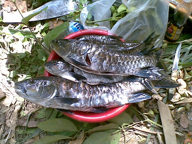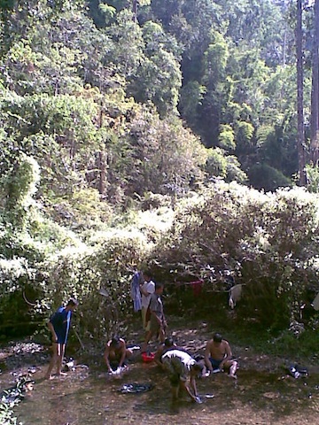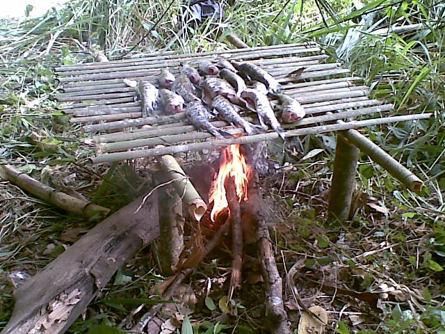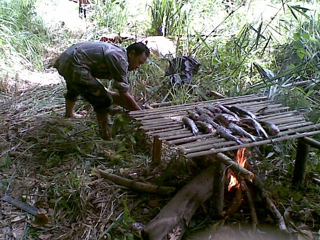 ส่วนหน่วยสวาทชองเราก็ออกไปหาปลามาเป็นอาหารเที่ยงกัน กำลังขอดเกล็ด เอาขี้ปลาออก ล้างน้ำ